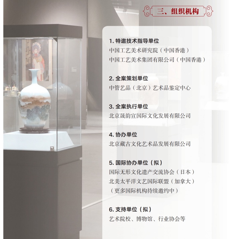 工美视界(工艺美术事业发展中心),创设于2016年8月。曾作为某国家事业单位的专属信息发布平台使用,现主要作为“工艺美术与创新设计博览会”、“横滨国际艺术家展 日中水墨协会展”中方组委单位、“艺海弥珍——文物保护与艺术收藏臻品展”、“匠心無界——当代工艺美术大师国际交流展”等系列项目的唯一信息发布平台使用。